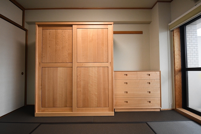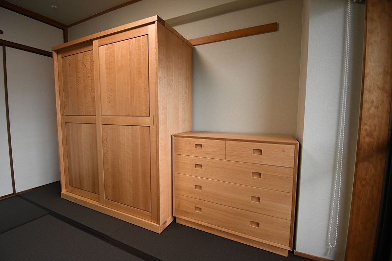 やはり、大切な衣類や思い出の品を守る収納家具が欲しいとのお声をいただき製作させていただきました。