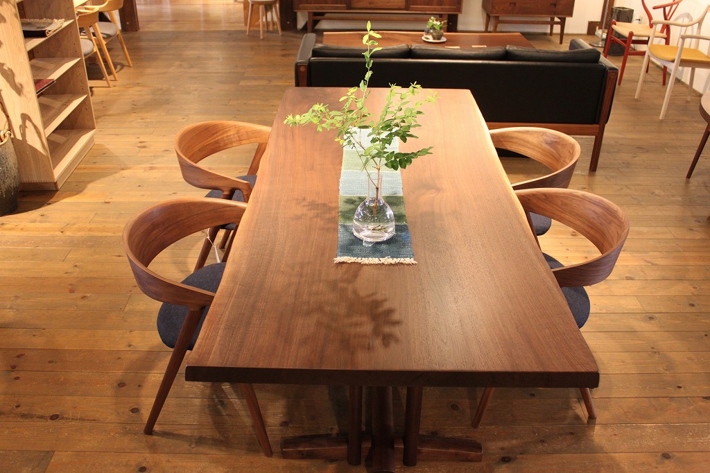人気のブラックウォールナットのテーブルも出来上がってまいりました。