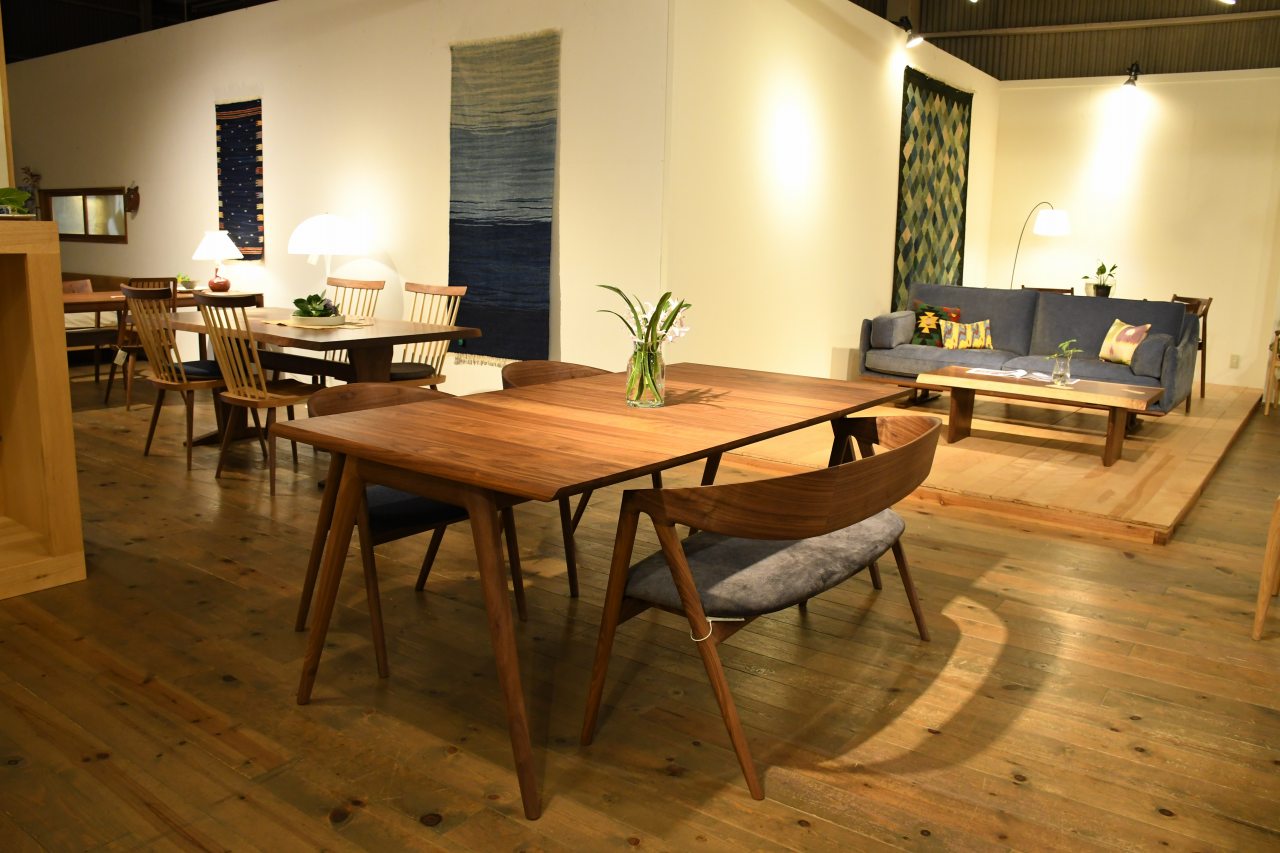 木目を横向きに使用する事でコストダウンとデザイン性の両立を実現したテーブルです。木の収縮や反りなど無理なく対応した構造になっており技術的にも精度の必要な難しい構造になっています。