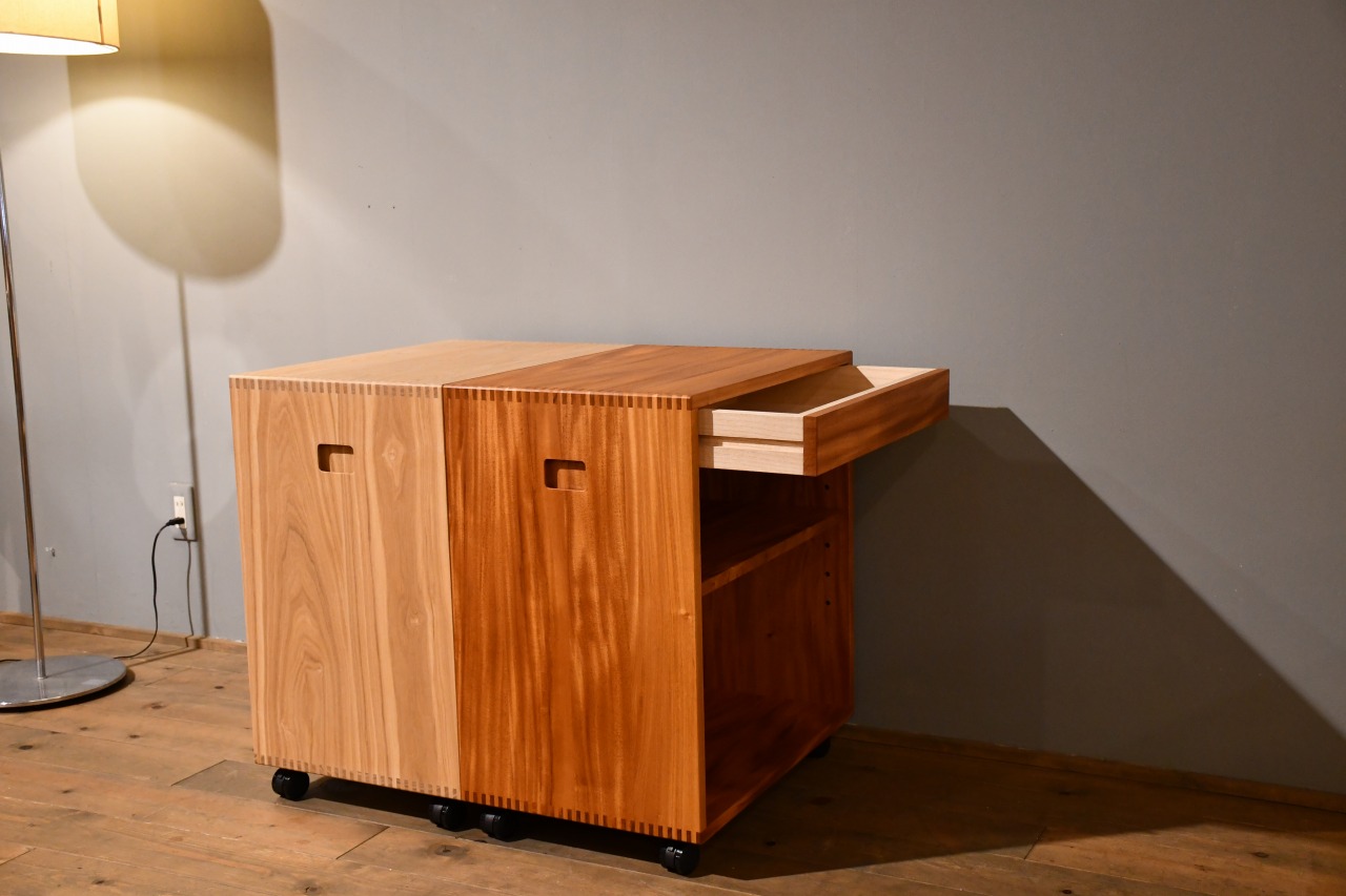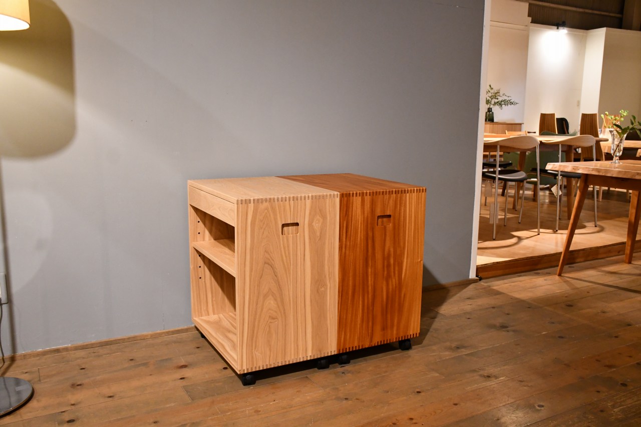ダイニングテーブルやデスクの周辺で使いやすいワゴンです。サイズオーダーも可能です。